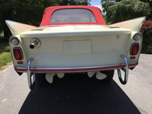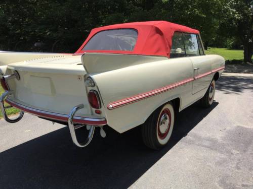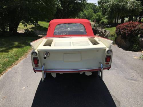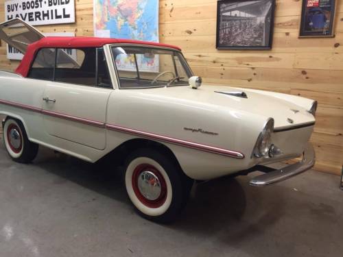 Amphicar is the only non-military amphibious vehicle ever put into production on a commercial basis. Amphicar is capable of going over 70mph on road, and 8 knots on water. It is comfortable enough to drive 500 miles a day. Amphicar cost $5MM to design in the late 1950's. It is totally watertight. The engine is in the rear, the same as used in the Triumph Herald. 1147CC 43HP, transmission drives rear wheels through unique land/water gearbox. Many Amphicar employees came from Borgward and there are many parts in common between the cars. Much of the braking system and suspension is Mercedes. The transmission internals are Porsche 356 as are some parts of the fuel system.