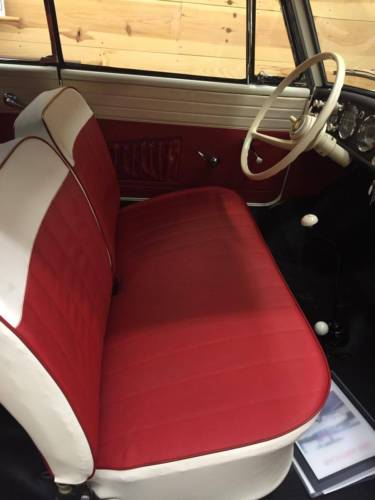 Original interior removed during the bare metal shell restoration and then original interior (seats, mats, visors, seatbelts) replaced. This particular car boasts black-in dash, high output heater, interlocking marine light and props so that the marine light will only activate when props are engaged. One of the few, if not the only, titled as a 1968. Un-punched license plate holes. Complete tool kit, nav light, books and papers. Complete original tool roll and correct bilstein jack with correct Amphicar-only handle. This has been in a long-time collector's collection.