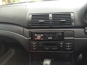It has a black carbon fibre trim and a hands free blue tooth radio/Cd stereo and i have the original factory stereo also .