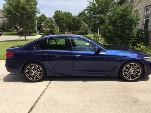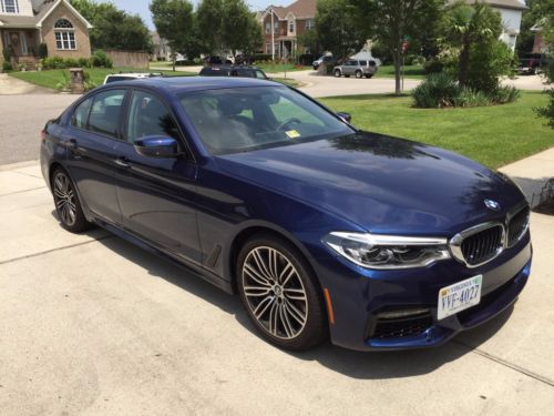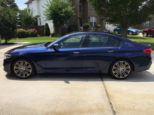 Pristine 2017 BMW 540i, Beautiful Mediterranean Blue, Black Dakota Leather Interior with Blue Highlights. M Sport Package, Cold Weather Package, Driving Assistance Package, Premium Package, M Sport Brakes, Harmon Kardon surround sound.Custom Ordered from the Manufacturer, delivered at the end of March. Has had only a few months of use. 3800 miles. Looks and drives as new. Definitely one of the most luxurious, best performing vehicles for the price- averages 27mpg overall, 0-60 in 5 seconds and whisper quiet on the road until you nail the throttle.