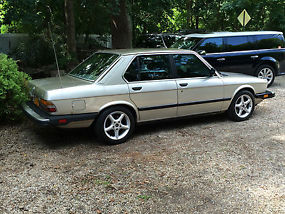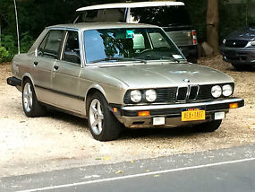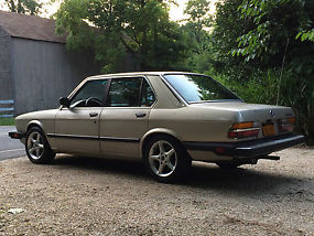 533i (rare top trim E28), light metallic gold, black leather, 5-spd Getrag tx