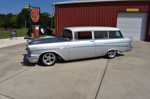 This is one of the nicest wagons out there right now. Full frame off resto on a rust free California car. 350 Tuneport fuel injected, 700r automatic overdrive,stock rear,CPP power steering,CPP front suspension with 2" dropped spindles, 2" rear lowering springs,full stainless exhaust,custom bent fuel and brake lines,power disc brakes on front,drum rear,cold ac,custom stereo,ultra leather seats,beautiful silver with a cream top,all new chrome from stem to stern,new glass in doors,winshield,dynimat sound deadner,tilt wheel. Car gets a lot of attention everywhere it goes. Only 3500 miles since restoration finished about 8 years ago. Electric speedometer quit about 100 miles ago. Not sure of its problem. Car is turnkey ready to hit the road. Even though it's been restored just remember it's still a 60 year old car. I'll be glad to store in my shop for up to 2 weeks after the sale if needed. I'll also be glad to help out with loading for shipping. Car is being sold as is where is without any warranty. PayPal deposit required within 3hrs of auction closing and full payment by wire transfer within 72 hours