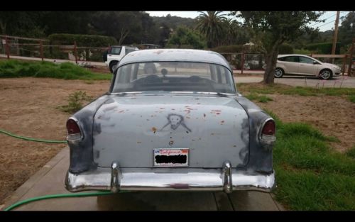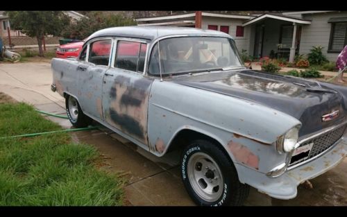 Hi there ebay here is my 55 chevy Bel Air 210 4 door running project little rust, has a 327 sbc, rebuilt carb new HEI distributer. New cooper cobra tires still has the mold marks and new front coil spring. It's running a 3 speed manual that was converted from the stearing colum to a floor shifter. Ford 9in rear end. This car I was told sat in a barn for 30 years befor the priovious owner got it out and started preping it for paint. Also needs some help clearing out the wiring gremlins, and there is a hole in the firewall only way the distributer would fit, the original plan was to cut the whole firewall and make room for a big block anyway. It has some hesitation problem right now. I have a bunch of extra parts all the chrome trim and then some, new door and trunk locks, new ignition switch, and other odds and ends.