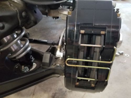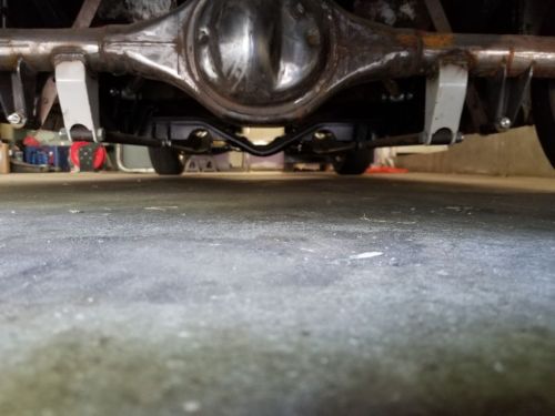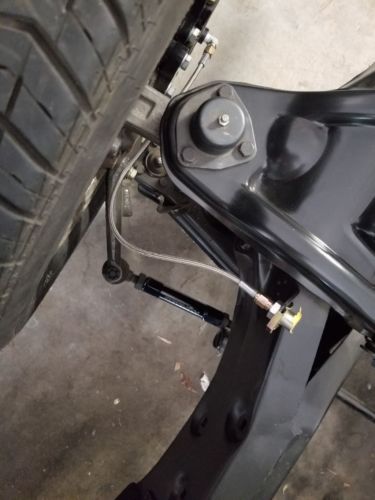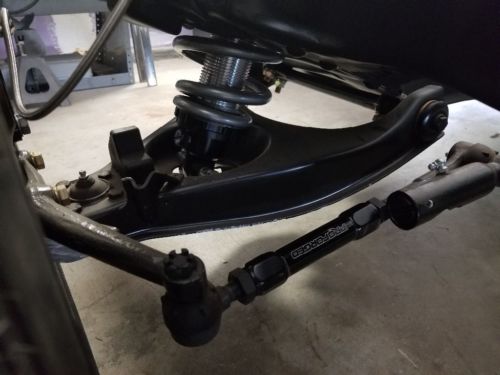 The A arms are brand new with the 5° camber all new bushings, drag link , tie rods, and aftermarket adjusters, 4 link rear suspension it will need shocks, however I put QA1 front adjustable in front. Trunk pan and mini tubs and tail pan are all new from Real Deal Steel.