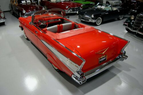 This 1957 Chevrolet Bel Air "Fuelie" Convertible took a first place award at the AACA national competition after it underwent an extensive frame-off restoration.1957 was the final year for the Tri-Five Chevys and became one of the most iconic automobiles ever produced.In 1957, Chevrolet did redesign several key stylistic aspects from the previous year Bel Airs.Perhaps the most recognizable change on the '57 Chevy are the large fins protruding from the rear quarter panels that give the Bel Air a truly classic 50s look.Chevrolet also tweaked the look on the front ends, with a totally new looking grille and bumper layout as well as a flatter hood with dual wind splits.To differentiate from the lower-end 150 and 210 models, the Bel Air trim featured an elevated gold anodized "V" emblem on the front of the hood with matching trim in the three small indentations located on the front quarter panels behind the headlights along with a matching gold "V" emblem and gold "Bel Air" script on the trunk.Chevrolet also began offering new and more powerful engine options on its top-of-the-line Bel Air series and most notable was its Fuel Injected 283 V8.Utilizing a Rochester mechanical Fuel Injection system, the "Fuelie" 283 V8s were way ahead of their time and were among the first mass-produced American made cars with this type of technology.The Fuel Injected Bel Airs were also exceptionally rare, with Chevrolet only producing 1,530 fuelies while producing over one and a half million vehicles in 1957.This particular Fuelie Bel Air Convertible underwent an extensive frame off, rotisserie restoration and was then judged at the Antique Automobile Club of America's Nationals where it took the first place award.Found under the hood on this '57 Bel Air Convertible is a Fuel Injected 283 Cubic Inch V8 Engine that runs great and pushed out 250 horsepower in its day.A Powerglide Automatic Transmission is mated to the FI 283 V8, ensuring that anybody can drive this classic Chevy convertible.This Belair Convertible is also equipped with Power Steering so that you can get in and out of tight spaces with ease.The white vinyl power convertible top is in excellent condition, going up and down with the simple push of a button.The exterior has been beautifully refinished in this Bel Air's original color, Matador Red, which probably the quintissential colors available on these 57 Chevys.The chrome and brightwork around the exterior of the car is in fantastic show-worthy condition.This Bel-Air convertible sits on 4 wide whitewall bias-ply tires with gorgeous spinner hubcaps which completes the exterior look of the car.The interior is absolutely stunning!The front and rear bench seats have been reupholstered in the original Red and Silver color scheme and are paired with fantastic black carpeting.The dash, door panels, and steering wheel are all in their stock configuration and are in excellent condition.The dash is equipped with a 120 MPH speedometer, fuel gauge, and temperature gauge, along with an AM radio and clock.Whether you're looking for your very first classic car or your garage is full of Tri-Five Chevys, this 1957 Chevrolet Bel Air Fuelie Convertible is the car for you.Give us a call today!