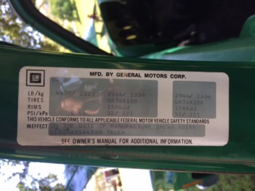 Owner was a elderly man who took incredible care of his beloved Chevy truck. He put plastic seat covers on the truck DAY ONE so condition of the green plaid seats is incredible! Jaw dropping! There are a couple small areas of floor board rot (non-active) from trapped water left undetected many years ago (this was common among these trucks, as insulation would trap h20 like a sponge) and some small holes in the rockers, all very EZ fix. My paint guy said about 1.5k to patch and match, so don't let this worry you. No need to do a thing as this is one seriously solid truck! I never had the work done, but if you want it perfect it won't take much!