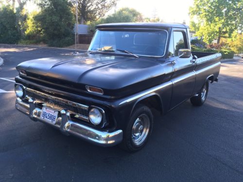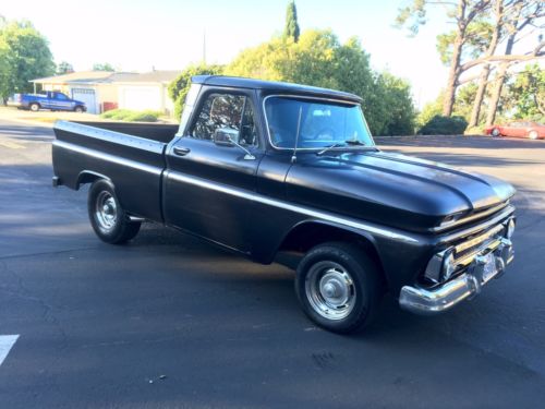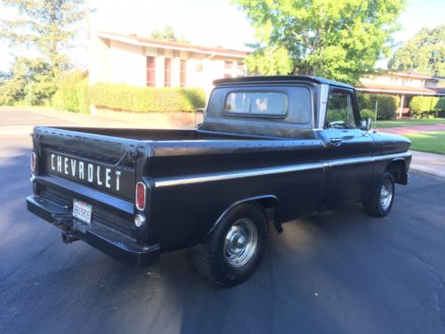 1966 Chevy Shortbed Fleetside. Recently rebuilt V8, converted from 3 On-the-Tree to floor shift (a bit tricky to shift at first, then you get used to it.) Truck runs very strong, has a Cam, New Holley Carb, Headers and Dual Side Pipes that sound excellent, not too loud, just right. This is a very fun truck to drive and I really hate to let her go but it's time for someone else to take her to the next level.