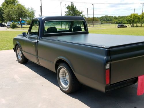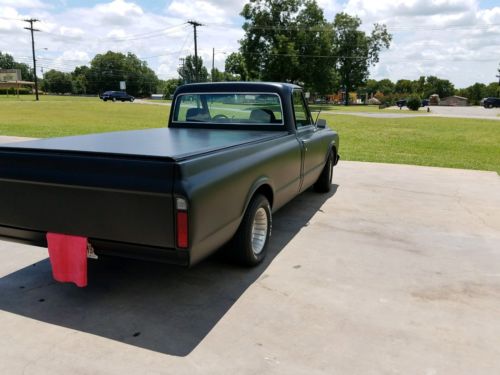 This is a 1970 Chevy C10 LWB truck. 388 cu. in. Vortec motor with aluminum heads. No leaks. Ceramic headers emptying into 3" exhaust with 50 series Flowmasters. 700R4 tranny with shift kit and with transmission cooler. K&N breather and cover. Brand new high torque starter with new external solenoid. Aluminum high flow water pump. Electric fan. Chrome hood hinges and springs. Brand new master cylinder. 4 wheel disc brakes with slotted rotors. Brand new BFG Radial T/A's (50's on back 70's on front). Centerline wheels. Custom vent window delete door glass. Digital gauges. Factory A/C and heat. Reupholstered bench seat with head rests. Billet chrome door handles and window cranks. Billet tilt steering column with chrome steering wheel. VERY STRAIGHT BODY. Custom tail gate with release on the inside. Custom bed cover. Black satin paint. No dents, dings, scratches or rust. ABSOLUTELY EVERYTHING WORKS ON THIS TRUCK.