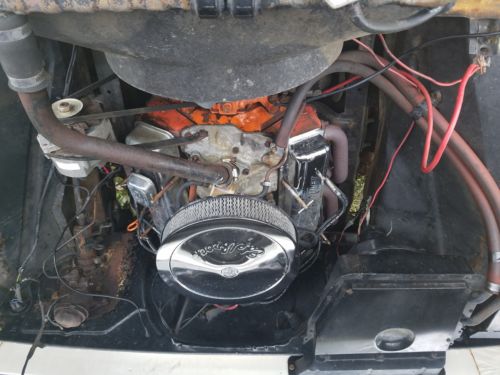 Old restoration . Small back window, some rust mostly surface, 327 board 30 over , rv cam, 350 closed port heads , holly carb, Muncie 4-speed , I have a new tail gate , door handles, sliding rear window , new master cylinder and other miscellaneous parts to go with it .
