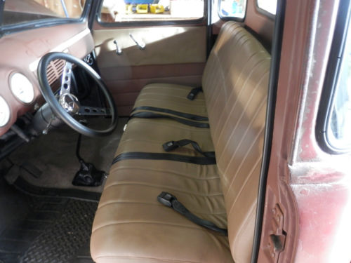 Interior: New Dolphin Guages and a old school steering wheel that is comfortable for anyone. It has a comfortable bench seat not sure what its out of but has been reupholstered along with the door panels. Nothing fancy or plush here it is totally old school except for the a/c. All the glass is good and windows work as they should. The interior has been sound matted also. The wipers do not work, and no radio Just love to listen to the sound and rumble of that cool new exhaust system