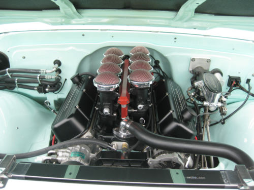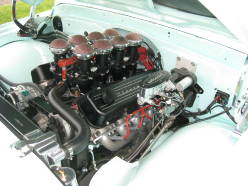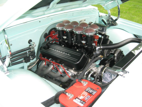 A professional Jon Bates interior with beautiful ultra leather seats, headliner, door boards and high end Mercedes carpet. Complimenting the interior is a set of Dakota digital gauges, a great stereo system, vent window less side glass, smooth rear window mounting, tinted glass, an Iditit steering column with a rosewood steering wheel and underseat LED lighting.