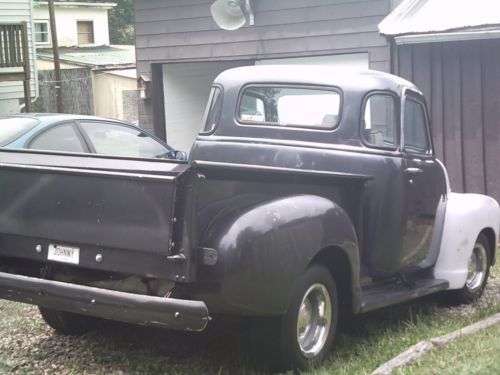 1949 chevy 3100 with nova frame and camaro rearend.350 motor 350 trans.professional frame installation.it has an alumnium bed with toolbox/battery box. modern wiring just needs headlights and taillights wired. it has more modern heater dash gauges and windshield wipers. it runs and drives but trans leaks some. . a great project for a father an son with most of the work done.