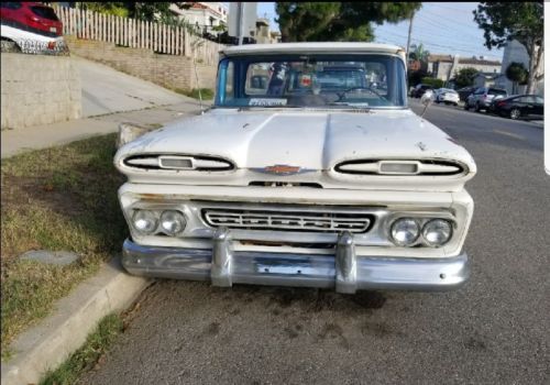 This auction is for my 1961 chevy apache deluxe 1/2 ton c-10 pickup. Ive owned many old chevrolet trucks and this is thee most solid best driving rust free cali desert truck ive ever owned, im not happy about selling it but i gotta pay the bills. Bought from the original owner who purchased it at security chevrolet in brea in 61, super rare big window deluxe trim,og v8 FACTORY automatic powerglide (85% of apaches had 3 on the tree or 4 on floor) ordered with all the deluxe options.it spent its whole life in the California desert as a low milieage rust free camping vehicle. This truck is straight,unmolested and solid with no rot or body work i can see! It has been well taken care of,It runs and drives amazingly and is in original stock condition aside from the toms axles system in the back .KA axles are an incredible addition as this truck cruises easily at 90-100 mph on the freeways.. Heres a list of some things the truck is equipped with: toms KA axle setup- All new exhaust with 12 & 18 inch glass packs- Awesome oxidized patina (old 2nd coat of white paint over the og brigade blue)- Nice full set of rare 2yr only 60-61 stainless deluxe trim!- Super rare og deluxe aluminum grill- Og deluxe bumper guards- Freshly rebuilt powerful 350- Super rare og 61 powerglide auto transmission- Uncut beautiful dash with og radio (radio works but cuts out often)- Og Deluxe steering wheel- Rare deluxe big window- windows are all good originals with Deluxe stainless window trim with brand new windshield rubber gasket- Og chrome bumpers- Lowered with jeep tj springs in back and torsion bar in front- All brakes are new just replaced two weeks ago- Comes with original California blackplates that came with vehicle- All original door locks same key - Og domelight works- Working og heater-original Dealer installed a.c. (Blows warm air -prolly needs frion)- Og Cig lighter works- New door rubber- Zero rust in floors- New door stops- Original floor rubber mats are still in nice shape- No rot anywere just minor surface (cab corners perfect)- New u joints- New Alternator- very nice set of lightly used remington poly 4 cushion air whitewalls, with a couple hundred miles on them if that,im sure i left out some work that was done as i have many reciepts for work done on this awesome truck.Some issues are: Left side tailight out, Blinker switch broke,Seat ok but needs redone more like stock fabric,speedo not hooked up Bedwood could use replacing at some point .