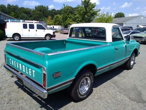 THIS IS A 1972 CHEVROLET TWO WHEEL DRIVE,C-10 ,CUSTOM DELUXE, SHORTBED PICKUP TRUCK.IT HAS A 454 BIG BLOCK ENGINE AND AUTOMATIC TRANSMISSION. IT HAS WORKING FACTORY AIR CONDITIONING. IT HAS POWER STEERING AND POWER BRAKES. IT HAS AN AM/FM CASSETTE STEREO. IT HAS MICHELIN XC LT 4 TIRES ON FACTORY RALLY WHEELS THAT ARE IN GREAT SHAPE. IT HAS CHROME BUMPERS AND DUAL EXHAUST, THAT SOUNDS GREAT. IT'S IN EXCELLENT OVERALL CONDITION. IT RUNS GREAT. IT'S SMOOTH AND POWERFUL. IT'S NOT PERFECT, BUT IT'S REALLY,REALLY NICE. THE INTERIOR IS EXCELLENT. IT HAS 67,164 MILES ON IT, WHICH I'M SURE IS ORIGINAL, BUT HAVE NO PROOF. IT'S REALLY CLEAN UNDERNEATH AND IN THE ENGINE COMPARTMENT. THE BED IS BEAUTIFUL. I WOULD NEVER SELL THIS TRUCK IF I DIDN'T HAVE A HUGE TAX BILL TO PAY. I DO NOT PLAN TO END THE AUCTION EARLY. PLEASE DON'T BID IF YOU ARE NOT SERIOUS AND HAVE AT LEAST 5 FEEDBACKS. TRUCK MUST BE PAID FOR WITHIN 5 DAYS AFTER AUCTION ENDS BY CASH OR BANK WIRE TRANSFER.