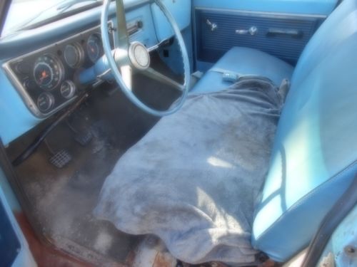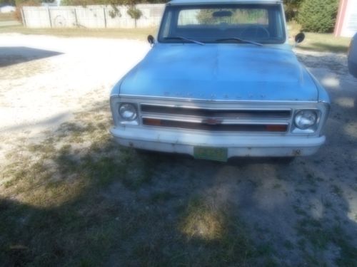 Up for sale a 68 Chevy C-10 long bed. This truck runs great and drives good, could use an alignment. New carb kit points, plugs, wires, fuel pump, tank sand unit, good tires, new manifold, good exhaust, runs quiet, can hardly hear engine running. Gauges working are oil, speedometer, not working gas gauge and heat temp gauge, ground wire needs attention. Body was patched before I got it with new rocker panels, cab corners, floor was patched, but is solid now. Cab mounts are bad, and should be replaced, but will still drive. It is a truck that needs tlc but mechanical is sound. Shifts fine with a 3 on the column. It has a 4.1 6 cylinder engine that runs very well. I bought this truck on ebay awhile back but never got around to putting license on it. It will come with a clear Michigan title. Brakes work good, and I had the box off and cleaned part of the frame. Someone put 1 shock on upside down, so that will need to be changed. This truck will sell with no reserve to the highest bidder. All shipping must be arranged by the buyer. No warranty of any kind is given, you bid it is yours. The heater is fully functional with fan and heat. Wipers work and all lights work with new taillights and new side mirror on drivers side. Happy Bidding!