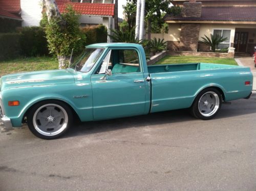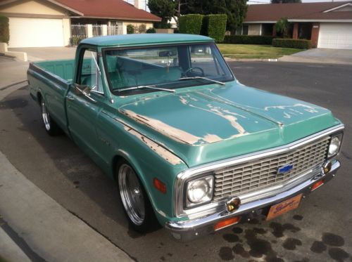 1972 Custom Chevy C-10 , Tuerqoise / rust patina , 2002 LS1 motor ( roughly 37 k mi. ) Carburated ( Edlebrock) Edlebrock intake , Stereo / CD , dual floor mounted speekers ( under bench ) , Heat , 20" rims (American Racing Salt Flat specials), New front tires , New : Holly electric fuel pump , New upper-Control arms , Drive shaft , Driveshaft collar , New body and bed bushings , Freshly re-cored radiator / mounts , Vintage Air AC , Referbished gas tank ( powder coated satin black) , sending unit , New gas shocks , recent brake job front / rear , new trans w/ overdrive , Ceramic coated ( Black ) headers w / dual Flowmaster exhaust , spare wheel No Trades / No Dealers !. Serrious buyers make an appointment to view truck. Mahalos / God bless ( THERE IS VERY LITTLE ROOM FOR NEGOTIATION )