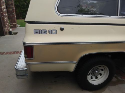Nice Orig. 1978 Chevy Silverado 10 (Big 10 series ) Original matching numbers ( 350 eng. 350 Automatic Turbo Transmission ( overhauled ). ( 5 ) original rims ( factory ). All moldings. Original paint ( 2 tone ) color. Original, AM RADIO. ( Reverse lights working ) Runs Strong & Quiet. Clean Body. ( Orig, 2x Fuel Tanks - Both Working. ) ( Owned it for 20 Yrs. ) Nice Original Truck. ( Very few Big 10 series were built. ) Removable Camper - Shell. ( Good shape .) Motivated seller. Very dependable & reliable. Wont be disappointed. Any additional questions, please notify.