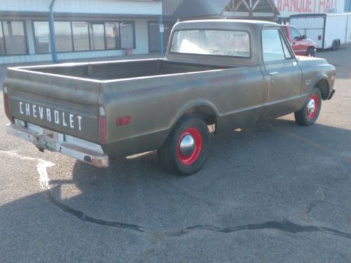 THIS C10 PICKUP HAS ORIGINAL PAINT WITH COOL PATINA ! THIS PICKUP HAD BEEN SITTING FOR 26 YEARS ! ALL BODY BRACES AND FLOORS ARE IN GREAT SHAPE ! THERE IS ONE SMALL DENT ON THE DRIVER SIDE FRONT FENDER (PHOTO) , THERE IS SOME RUST IN THE ROCKERS ON BOTH SIDES ! THE BED IS VERY NICE AND NOT ALL BEAT UP ! I CLEAN THE GAS TANK, REPLACED MASTER CLY., GOT THE BRAKES WORKING AND GOT IT UP AND RUNNING ! WOULD BE A GOOD CANDIDATE FOR A 5.3 LS CONVERSION, IF YOU HAVE NO FEED BACK CALL BEFORE YOU BID ! I'M SELLING AT NO RESERVE !! I RESERVE THE RIGHT TO STOP THE AUCTION AT ANYTIME ! FOR MORE INFO. CALL ME AT 316-393-0334 !!