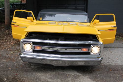 1969 Chevrolet C10, short bed pickup. VIN CS149F8880440 . 454 big block 10:5:1 Compression Engine. Runs and drives great with excellent steering. 8 Cylinder Automatic Transmission. Chopped Top, Headers with 750 Holley Carb. Factory bucket seats with detailed and clean interior. Very professional and high-grade yellow paint job for that classic Americana look. Good tires on the truck as well. Private owner of truck for 5+ years and looking for a good home for this beauty. This Vehicle is ready to hit the streets and cruise!