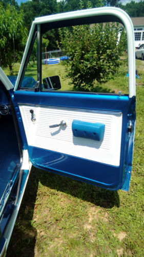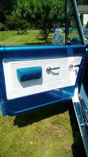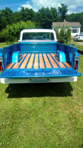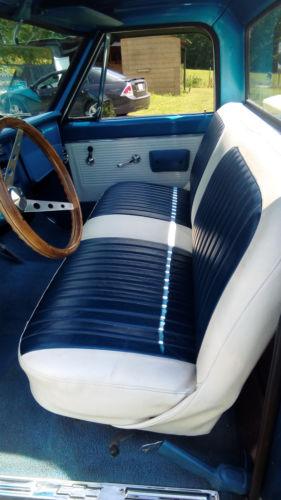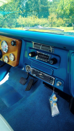 350 V8 bored 60 over with mild cam. Dual exhaust with headers. 4BBL Elderbrock carb. 700R transmission, front disc brakes with 5 lug wheels. Truck was professionally restored 3 yrs. ago and driven little since. The interior was slightly customized with a blue and white bench seat and a custom instrument cluster made from the same white oak as the bed. Because the instrument panel and cluster was customized the mileage of the truck is estimated as best we could.