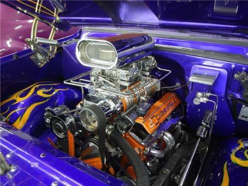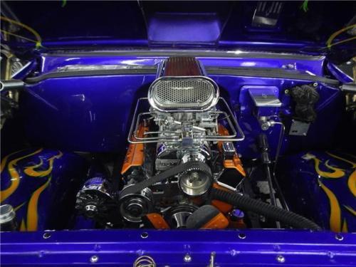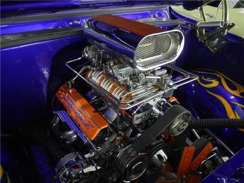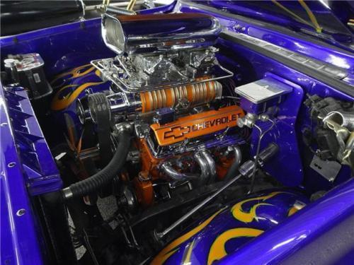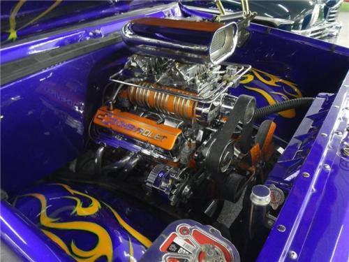 Supercharged 355, 4 speed, chopped top, power disc brakes, Coloradocustom wheels, 9 inch Ford rear end, custom paint, custom interior, gear370 posi tract, B&M blower, autometer gauges, tubular A-arms, airride suspension.