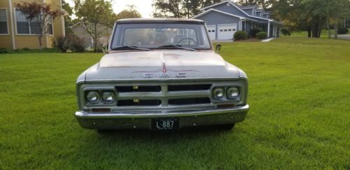 1968 GMC C-10 Pick up . All original panels that came on the truck. Rockers and Cab Corners and in good Condition. Its not perfect, but no major rust. No big holes in the floors or rockers , cab mounts ect. The beauty of this truck is its all the orginal sheet metal and character that GM put in the truck in 1968. All the lights , wipers , ect work. You can drive this thing any where , starts right up every time. Does not smoke and runs like a top. Manual everything on this one, steering , brakes , windows , ect. its all powered (by you) . It has new tires and recent fluid changes, a new Champion all aluminum radiator and an optima battery. Not much left to say. Its a nice old pick up. I have 2 others and honestly would keep it but I need to make some room and buy another 50 yards of concrete. Its Located in Cleveland, TN. About 20 miles north of Chattanooga. I have a buy it now and require an immediate deposit if you use it. Otherwise the reserve is respectable. I will consider trades, buy only other GM cars and trucks.