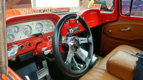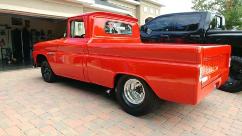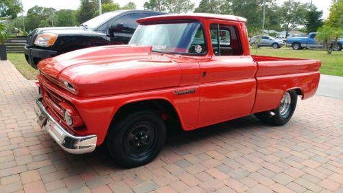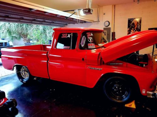Beautifully kept, rare fleet side 1960 c10 Apache in great working condition turns heads at every show or while cruising down the street. Has been equipped to drag race or can be used for a Sunday drive. Mickey Thompson 33 x 21.5 x 15 rear tires w/ 95% tread left; original 1960 all steel body except fiberglass induction hood; custom LED head/tail lights; custom fuel cell relocated to the rear; very cool shaved door handles with custom door poppers w/ remote; custom leather interior in excellent condition, leather headliner, with sun visors, 5pt racing harness, custom shift light, AutoMeter gauges and gauge cluster, custom steering wheel, push button ignition. Motor is a 383 stroker; cast block w/aluminum heads; Optima battery; Nitrous Pro-Flow plate system w/ purge; custom cold air intake; custom tuned pro systems carburetor; MSD 6AL ignition; MSD crank trigger; MSD digital multi-retard box; gear drive; electric fuel pump, electric water pump and electric fan; custom exhaust; custom radiator overflow tank; manual shut off switch; single adjustable QA1 shocks on all 4 corners; Florida title in hand, decals easily removed if needed. A lot of good memories with this vehicle but have too many projects on the go and sadly need to let it go.