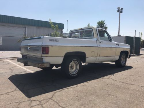 Up for sale is a 1980 Chevrolet Silverado SWB pick up. It's equipped with a smooth running 350ci. V8 &A/T. It has 148k miles. Factory A/C, P/W & PDL.I have the original carb & air cleaner to put it back to gas. Dual fuel tanks. Body is in fairly good shape & the paint looks to be original. There is some rust in the bed floor near the propane tank & in the lower right front fender (as seen in pics) The rest of the truck is clean including the floors, cab corner's & rockers. Rear sliding window. It's missing the driver's side bed trim. Truck fire's right up & run's down the road smooth, brakes good & doesn't pull. Interior has a new carpet kit. I Included a pic of the SPID in the pic's so you can see all of the option's the truck came with. Still has the OG California blue plates. Just smogged & tagged it last month. Also has a new catyletic converter & exhaust from the cat back. If you have any questions shoot me an e-mail. I have the clean California Title in hand. Thanks for looking.