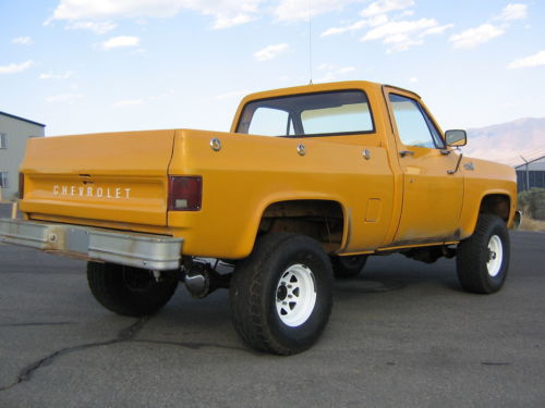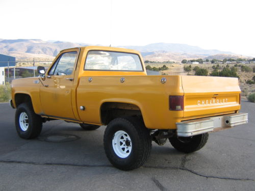 You are bidding on a 1979 Chevy Pickup. It was originally purchased and owned and maintained by Siskiyou County in California. 2nd owner purchased it from a county auction, did the lift kit, new fuel lines, gaskets, and a bunch of other items on the truck.. Then life got in the way, and the truck sat in his shop for the last 12 years, and never left the property. I bought the truck about a year and a half ago, and am the third owner. I replaced fluids etc to make it safe and roadworthy. I found a new project, so now this truck needs a new owner to take it to the next level.