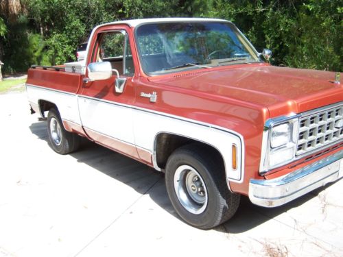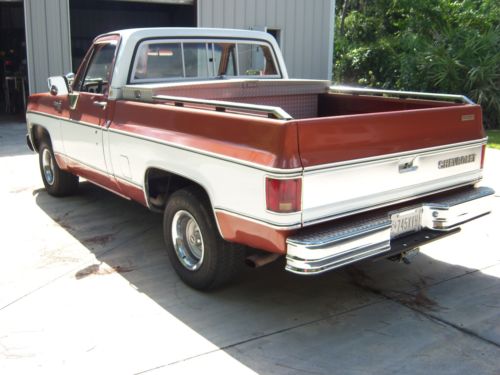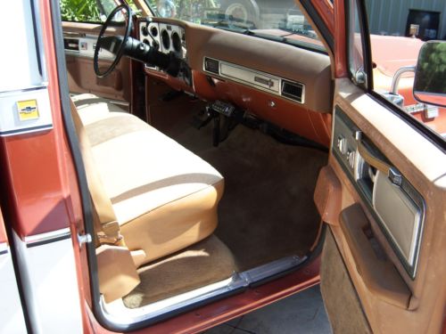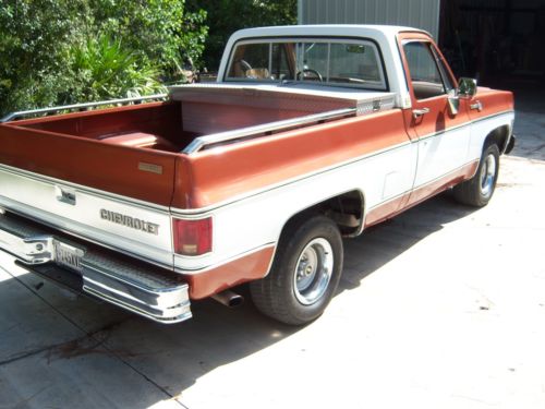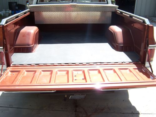 NOTE I have lowered the price due to some issues here that are beyond my control having nothing to do with the truck . A local sale wasn't completed. So For sale is my 1980 Chevy Silverado shortbed pickup. I bought it from the original owner in 1993. This is the last year for this body style with the chrome trim and one off grille. The truck was ordered special new in California by the first owner who was an auto mechanic teacher. The truck was equipped with the old Olds 350 diesel. As you might know these trucks had a special insulation package and slightly heaver front end components. It was driven for 5 years with no problems until 1998 when I changed the motor to an Olds 350. It was totally rebuilt to stock specs with standard size rings and bearings. At that time the 400 turbo trans was rebuilt using the gas torque converter. The Olds motor is a plug and play change out as they are the same block. I installed new fuel tanks and sending units. It has dual 16 gallon tanks and the electric switching works. It has the diesel radiator, dual batteries and the large starter. It has the original exhaust system. All the components for the diesel are complete under the hood. At this time we touched up the paint. The is no rust anywhere period. Chrome is all original. The interior was just redone back to stock. Seat, carpet and headliner. Toolbox, bed rails and a trailer hitch. Dash cover is original. Tilt wheel, electric door locks and windows all work. I also just replaced the hydro boost, all of the lines and the master cylinder. It runs and drives well.