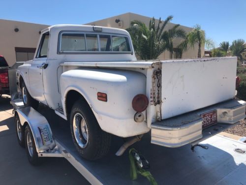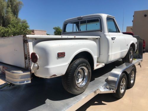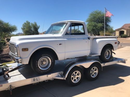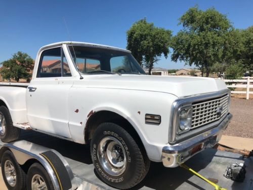 1972 CHEVROLET C-10 SWB. GREAT TRUCK TO RESTORE. TRUCK CMAE WITH A FACTORY V8, AUTOMATIC, POWER STEERING, POWER DISC BRAKES. ROCKER PANELS AND CAB CORNERS SOLID. RUST SPOTS IN FLOOR AND CAB MOUNTS. NICE RALLYS AND TIRES. TRUCK HASN'T RUN IN 7 YEARS. NO FRONT SEAT. TRUE BARN FIND.