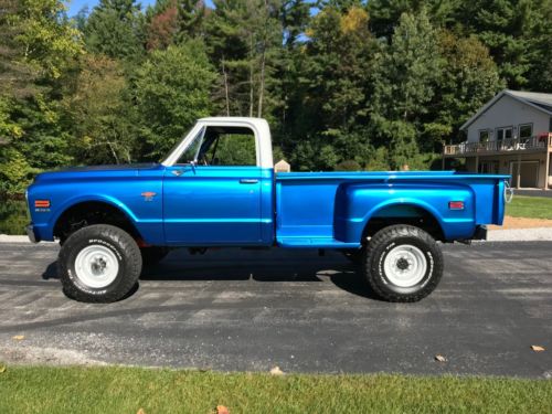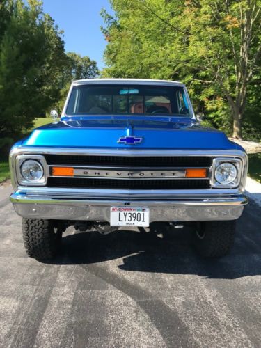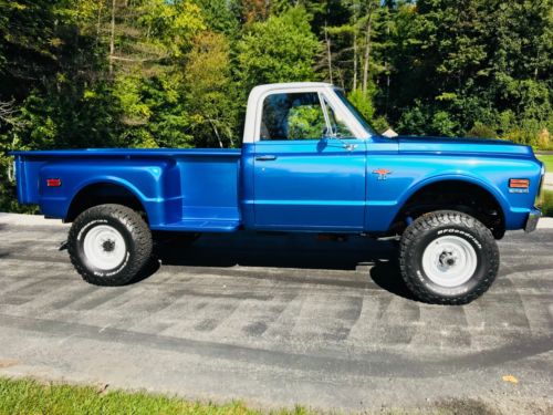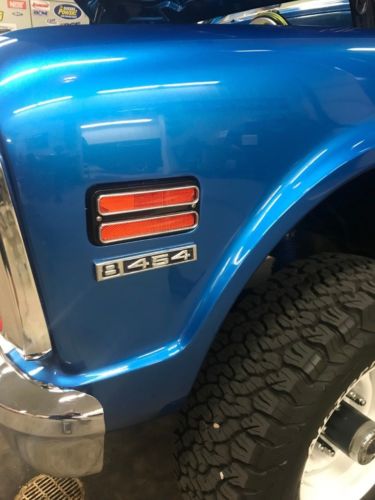 1970 Chevrolet C20 factory 4x4 with 47,918 original miles. Truck was owned by the state of MI and spent its whole life on a Beaver Island as A fire truck. No salt on Island never driven in winter. I have original bill sale and other documentation. I restored the truck over past 10 years. Every nut and bolt frame off restoration. Only have driven truck 750 miles since finished in July 2016 never in rain frame and under body as nice as nice as top. I have lots pictures through out whole restoration. I built the truck to drive and pull. Has a new 454 GM crate motor with upgraded comp cam, ported oval port heads, factory GM cast iron high rise intake manifold, high flow cast iron vortec exhaust manifolds, 9-7-1 compression runs good on premium fuel. About 425hp. Serpentine Belt conversion. Edlebrock 800 carb with electric choke. New 4 core radiator with dual electric cooling fans. New vacuum brake cylinder for disc brakes. SM465 4 speed trans with hydraulic converted center force dual friction clutch and 205 transfer case where both rebuilt during restoration. Has full floating 14 bolt rear end with detroit locker 4.10 ratio all new. Front end is 1 ton dana 60 with factory posi unit and disc brakes. I added front sway bar for better driving on street. New power steering gear box was reinforced for less flex. All stainless 3" mandrel bent exhaust with flow master mufflers. Aftermarket 16x8 steel wheels with 285/75-16 BFG all terrain tires. Complete new painless wiring harness (whole truck) with fuse box. Custom built 20 gallon polished aluminum fuel tank mounted in bed. Edlebrock quit flow fuel pump with all AN braided fuel line. All marker and head lights where replaced with factory looking LED lights from LMC truck. Oak bed with all polished stainless fasteners. Interior has bucket seats built for truck that have center consul that folds down to make into bench seat. Resto sound radio with built in USB and blue tooth with 4 speakers 2 under dash 2 in kick panels. All glass was replaced including sliding rear window. I didit tilt steering column. Sound deadening mat installed in floor and all cab. I am probably missing some things but I believe this truck is one of the nicest trucks in country. It also drives that nice and is built with the strongest drive train that ever came from factory and is as tough as it looks. I had a appraisal done by Classic Auto Appraisals for insurance came in at 48,780 dollars. I have a lot more money in this truck then that but I started new project and this one must go. Please do not bid if you do not have money and I do not need help selling this truck. I can help with shipping in USA.