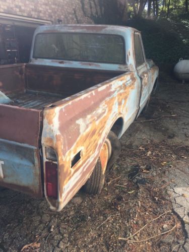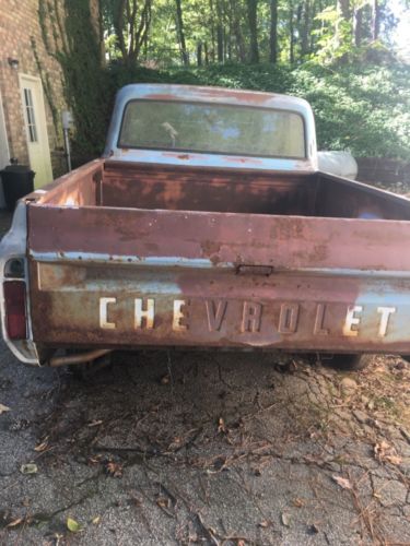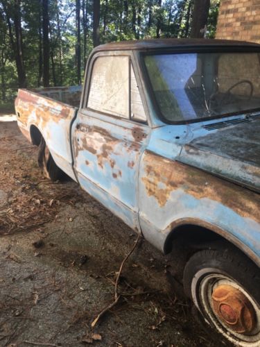 1969 SWB Chevy truck that needs restoring. One owner since 1972. Hasn’t been on the road in years but was cranked and moved about a month ago. It is a 6 cylinder engine with 3 speed column shift. Engine has been completely rebuilt with balanced rotating assembly. Has a new battery and comes with all original parts plus extras. The seat has been reupholstered. Windshield has a crack. There is repairable rust on the bottom of the doors and bed. Needs tires and brake work.