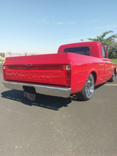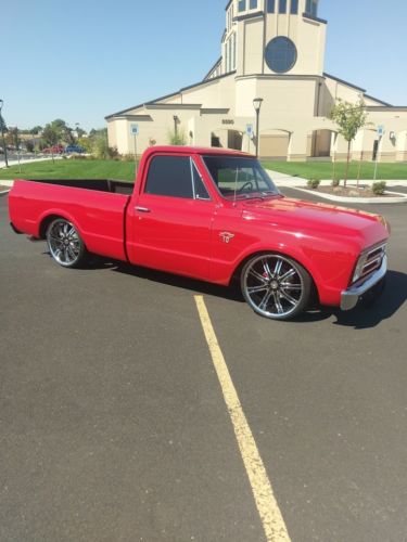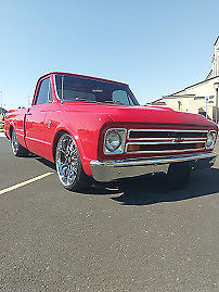 This 67 Chev is a true factory short bed, 2wd, bright red, exceptional paint on a very straight body, no rust (California truck). Front and rear bumpers are new, all stainless around grill is perfect. This C-10 pickup is powered by a 350 V8 and a turbo 350 tranny. Headers with new Flowmaster mufflers, full length exhaust. Edelbrock intake with factory carb, chrome power booster, power disc brakes front and rear drum. This C-10 is sitting on 10X22 Centi wheels with 255-30-ZR22 tires. Interior features are tilt wheel with comfort grip steering wheel.Sony CD MP3 player with Memphis car audio speakers and amp, new carpet, door panels, seat, tint glass, air ride suspension all four corners. Any questions , please call or text Bill at 208-305-9128. I reserve the right to remove from auction at any time as it is advertised locally.