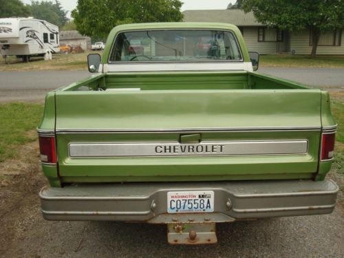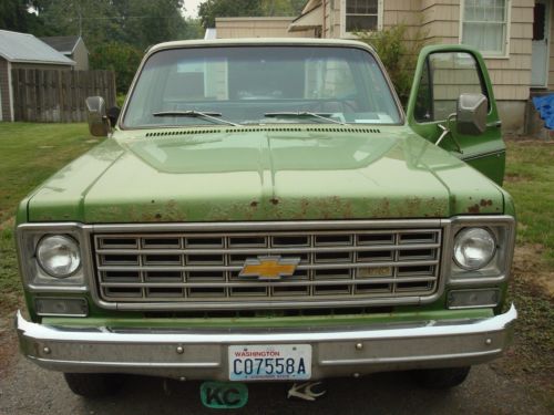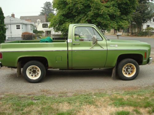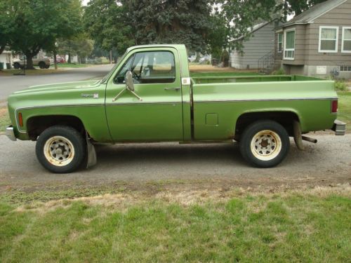 75 1/2 ton p/u, short box, fleet side, 350, auto, full time 4x4, cheyenne, one original owner, original paper work, mostly original, have stock wheels and caps, good mechanically, sheet metal rusted, frame good, tires poor. work out of town, so do business on weekends. cell 925 899 3417 for questions and i pickup my email on weekends, sometimes i work sat. info in condition description also. the first pic was when it had new sheetmetal, the rest are current.buyer takes care of any shipping.