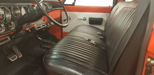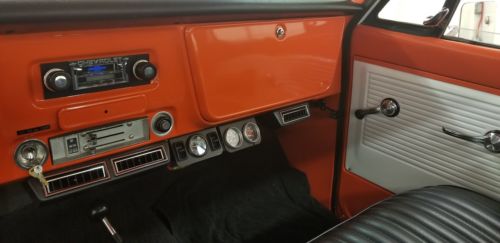 For sale 1971 Chevy C20. Frame off restoration. Powder coated frame. Every nut and bolt and wire replaced. 383 stroker, 700r4 trans, and 208 transfer case. Dana 60 axles, front and rear, with Detroit lockers and 4.88 gears. Bed is Linex with Orange. Aftermarket air conditioning.4" suspension lift, 3" body. 35" BFG'S on factory deep dish rims.