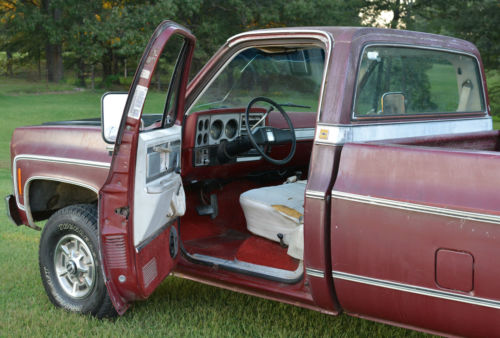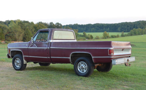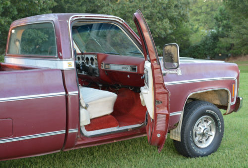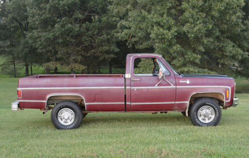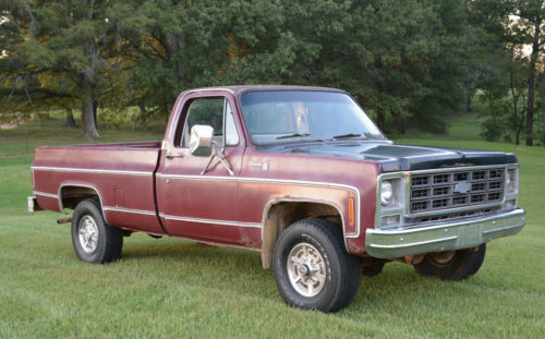 Looking for a new toy to tinker with and restore on during the upcoming cold winter months? Consider this hard to find one family owned 1979 chevrolet silverado K10 4x4 fleetside pickup truck with it's original window sticker and manuals pictured, Special ordered 4x4 with the silverado package originally painted a beautiful 2 tone dark carmine red with silver down the middle, 1 repaint many years ago, 350ci engine, automatic transmission, Runs and drives fine considering Grandpaw parked it away in the barn over 10 years ago, Only 86,654 actual miles, 4x4 works fine, Straight solid southern body with some minor dings and the worse rust being in the front fenders, I have 2 brandnew fenders which are included in this auction, Never up and down salty roads or subjected to salty climates, Solid frame, and floors, 2 small rust spots in the rear bed floor/small spot passenger side rocker easily repairable, Windshield and dashpad is cracked, Original seat is torn, Has dual fuel tanks, Gas gauge reads past full. Bad ground? Aftermarket hood and I have the original as well which needs a little work, Hood springs were removed from the hinges and I have them, Overalla great father/son/daughter wintertime toy to tinker with and enjoy asis? Restore back as original? Shop truck? Snow plow truck? Manypossibilities with this one and this will make someone a very cooltruck, Total delivered price was $10,563.05 in 1979, I have apersonal delivery driver for quickdelivery @ $1.25 a loaded mile that can have the truck to you with thequickness if you choose to do it that way, Serious inquires only please, Feel freeto contact Paul @ 901-219-9569 with any questions, If no answer pleaseleave a detailed message and I will return your call as soon aspossible, Bidders withzero/less than 10 positive feedback must contact me before bidding or Iwill cancel your bid/bids, Bank wire transfer preferred for payment asit is the quickest and safest method of payment for both the buyer andthe seller, If you cannot follow our payment instructions please lookelsewhere, Sold in as-is condition with a clean clear title,Thanks again for lookingand bidding.