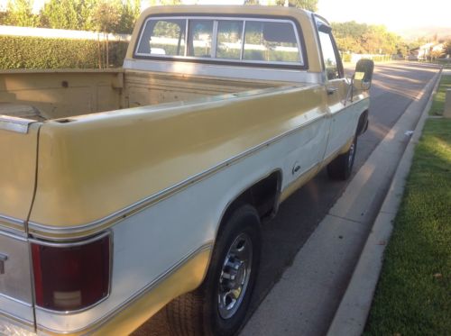 First, some history, as this is what makes a vehicle special. This Silverado trim pickup has been in the family since it was purchased new in 1977 from now defunct Crossroads Chevrolet in North Hollywood, CA. This belonged to my wife's uncle. This truck was tended to and pampered as though it was his kid. The stack of work orders and parts purchases is almost two inches thick (more about all the repairs and upgrades later). For the past nine years, the truck saw much reduced use, as 'Andy' became ill. As his condition worsened, he let it be known that he wanted the truck to go to my son when he was gone. We took possession of the truck in early 2016. In this time, exactly 5150 miles were placed on from early 2016 to now in 2018. This is a California car, showing minimal surface rust in the bed with the usual little dings accumulated over 40 years. The worst rust is the size of the engine key, on the bed top wall (see picture). This Silverado is finished in the two tone yellow/white scheme. For a factory paint job that is over 40 years old, it's in great shape. It carries a very original and aged patina (for the restorers out there). There is a scratch show some surface rust and very slight indentation on the right side by the right side gas tank cap, about two feet long. This truck would make a solid base for a restoration. There are a few beautifully restored examples of C10s and C20s on Bringatrailer.com. A Snug Top was purchased in 2001 from LA area famed Vern's Truck Tops for $1200. I have the lifetime warranty sheet for it. This is included with the truck. Keep it or sell it.