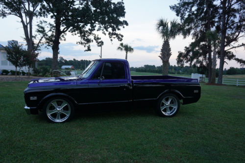 Talk about perfection - the paint is a custom basecoat, clear BASF deep purple two-tone on black, wet- sanded and buffed to mirror image. The gas tank has been relocated with a flush in bed cap, as were the tail lights to the bumper for that subtly pleasing custom-added touch! It is a cream puff - runs smooth as silk and handles like spun cotton. Easily cruises at 90 mph on the highway - practical and fun to drive with plenty of power. This truck has been meticulously cared for in every detail. You could not build it from scratch for double this price. Bid quickly. This baby runs, drives and looks like a brand new truck! "Barrett-Jackson vehicle" that has been kept in a climate controlled building as part of my private collection.