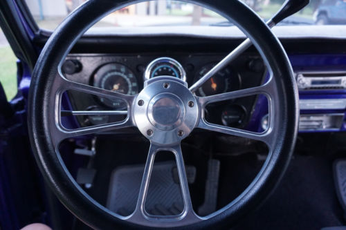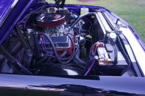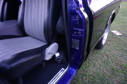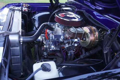 The 2.5” dual exhaust with Flowmaster mufflers sounds fantastic! It has been professionally lowered 5 inches in front and 3 inches in the back, giving it a real ready to rumble stance. Coys 20 X 8.5 in front with 20 X 10 in the back C57 polished wheels with 4 wheel power discs and big Wildwood brake in the back, performance slotted discs and SBBC proportioning valve with a 12 bolt psi rear end.