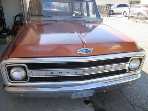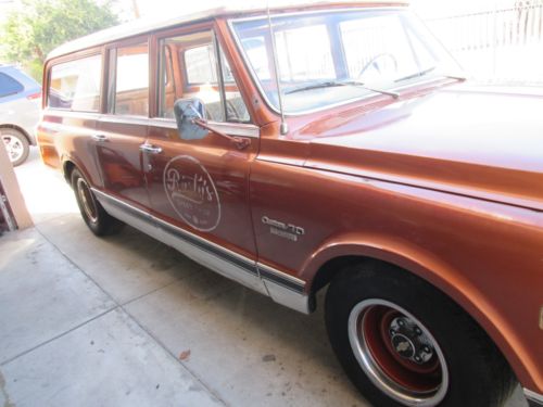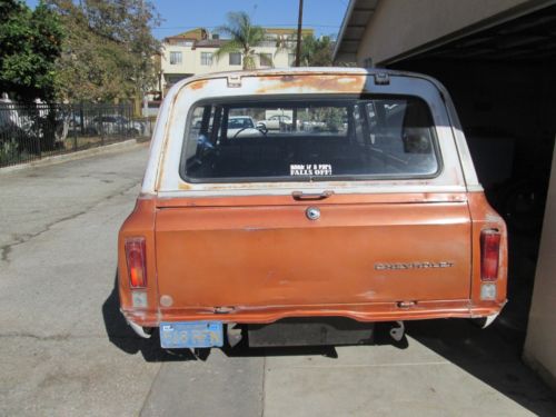 HI! you are looking at a original California C10 396 suburban, with original paint.. Runs and Drives Good.. It does have some rust, as shown in the photos.. But it is otherwise solid.. I believe The engine is the original Engine that came with it This is all I can get off of the front under the right head of the block T0105TBG The person that I purchased it from said that it was the original Engine, That it came with I also have the original Air cleaner, And the Valve Covers, as shown in the photos.. I understand that they pretty much make all new patch panels for these Trucks/Suburbans, And I have seen worst I believe that the roof up front is the worst part of the rust situation But the windshield is still intact, There is no signs of this truck completely falling apart. Over all this suburban has got the potential to be a great candidate to restore Or have fun driving it the way it is, I still get thumbs up, It really is a cool looking suburban! If you need some more info give me a call (818) 879-3764 David.