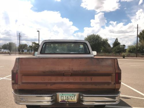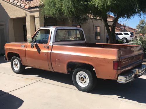 You are bidding on completely rust free 1980 C10 short bed. The truck is an amazing example of a Arizona survivor. It has always been in the state of Arizona and has never left. This truck has an outstanding patina look. Truck features new cab trim and new seat cover, original 6 cylinder and sm465 4speed manual transmission. Runs and drives great. Missing drivers door panel and has an exhaust leak. Overall an outstanding platform to either build or enjoy as is. You won't find a more rust free body and chassie. I encourage anyone to come look at the truck in person the pictures do not do it justice. Call or text 614-915-6049 for more information or to view the truck.