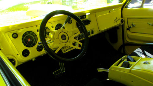 Wild looking street rod, 1968 C-10 chopped 6 inches. Lowered coil springs, aftermarket front A arms, stock rear suspension. Tubbed bed, 70's GM 10 bolt posi rear. 350 turbo automatic, 350 mild engine. Headers and dual exhaust.Power brakes with cylinder and booster mounted on frame. Aftermarket Vintage Air conditioning. Fuel cell and battery mounted in the bed. Body colored snap on tonneau cover. Truck was built in 1999, driven to Florida twice from Mass. Approximately 20,000 put on in the past 20 years. Some minor surface rust underneath, no rot. Paint shows it's age in some spots, no dents or dings.