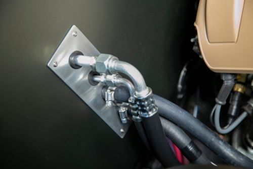 The truck rides on a set of 20″ US Mags 8" wide front and " rear wearing new Lexani tires with 275s out back. Combination of components to get the lowered stance. Drop coils, blocks, and modular spindles. Braking upgrades consist of 6-piston Wilwood calipers in front and 4-piston on the rear axle. Entire brake system was carefully laid out and fastened throughout. Manual rear proportioning valve mounted under cab. All flex points are made up of high quality braided lines.