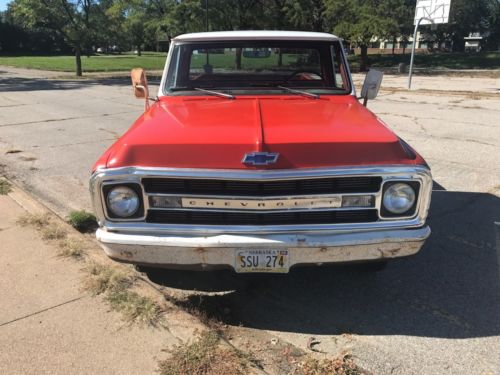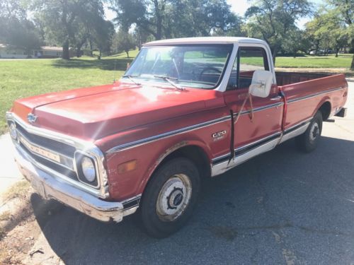 1970 C20 3/4 Ton 350/350 automatic. Runs and drives good, a good driver. It retains it's original sheet metal and paint so you know what you have here. Has the 16.5 rims which are harder to find. Wood bed all intact. Truck has very minimal rust for what you typically would see on the C10's but does have some dents and dings. Only rust is some pinholes in cab corners and right back cab mount, right fender below the battery tray. Driver door got sprung or bent back so will need a new driver door but opens and closes fine. Doesnt' leak oil or burn oil, drives straight down the road at highway speed. This is a great restoration candidate. Have more pics upon request. I welcome any and all inspections. Have any questions just ask.