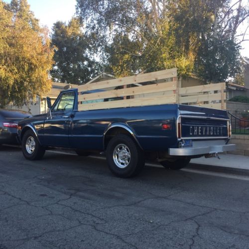 Hello and Thank You for stopping by my ebay ad, I have for sale a 1972 Chevrolet C10 / C20 Custom 3/4 ton regular cab long bed pick up truck, 350 v/8 with manual transmission 3 on the tree. Truck runs well and looks good, nice sounding exhaust, and it has newer oem gm factory alloy wheels. Items that are new as follows , paint, tires, , chrome trim, mirrors, door handles, lights, grill, wooden bed and rails, floor mats, re upholstered bench seat, radio, dash bezel, heater switch, battery , belts, hoses, air intake assembly, valve covers, spark plugs, spark plug wires, and removable stake bed sides for that oldie look, over all, a very descent truck. It's a good looking, running, sounding and driving truck, just needs someone to finish it up, it's not a show truck, and it's not a truck you need to start from the ground up restoration . I have clean title in hand in my name and it has just been re registered till next year , so all is good and current. Please feel free to call or text me, email is fine to ,if you have any questions or offers. Please Note : I do have the vehicle offered for sale locally. Thanks for stopping by my ebay ad and 661-644-6526 if you would like to text me or call.. Bobby