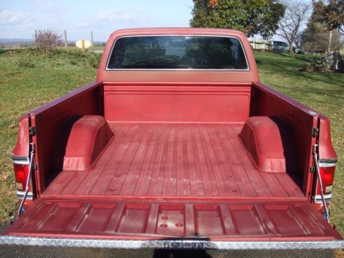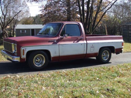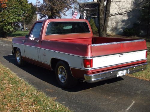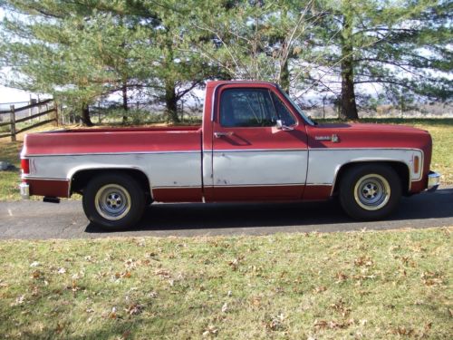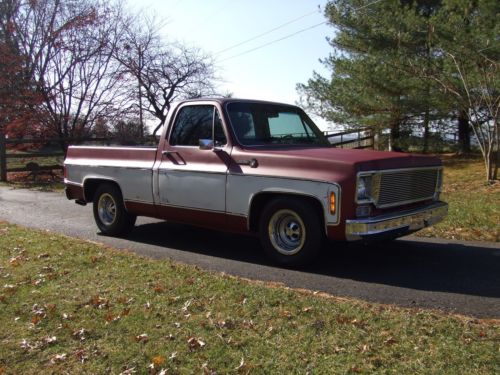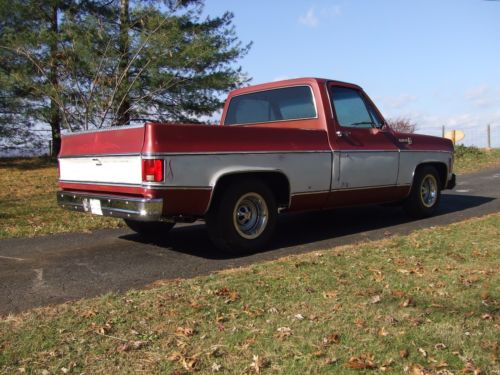 This is a nice clean, solid, straight 79 round headlight Shorty that needs nothing but a Driver. Lots of time and money have been put in this Truck and it shows. Strong running 355 crate motor with 5000 miles backed up with a New T-21 4 speed Trans.with Hurst shifter. New Custom duel exhaust. Runs and drives great. No rust on the body and the bed looks like it has hardly been used. Lowered just right for a great look, 3" front 5" in Back. New Tires on Rally Wheels and 373 Posi Rear. All stock gauges work like they should and has a nice autometer tack installed as well. Interior looks great (see pics) reupholstered seat, Clean dash with no cracks. Custom stereo system bass control, USB Bluetooth. If you have any Questions please don't hesitate to call or text me at 304-620-3294. NO Reserve.