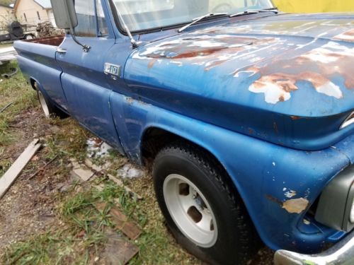 selling a 1965 chevy c10 pickup truck,95% rust free, installed a 350 / four barrel, 3/4 cam engine approx. 6 years ago.no time to continue restoring .been parked,4 speed trans. all glass perfect. obviously patina finish. breaks need bled .for more information, call Fernando, 1-660-383-6083-- cell #.