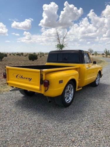 For sale is a 1969 Chevy short bed stepside pickup (68 grill). It has a new 4-bolt main 350 V-8 engine (330 hp), new Edelbrock intake with Holley 3310 carb, Taylor 8mm wires, 4-speed manual transmission, nearly new exterior paint (with a few chips see photos), new header-back dual exhaust system, new complete front to rear wiring harness, new tail lights, and mirrors. Hedman Hedders, updated interior with new carpet, door panels, knobs, handles, armrests, sliding rear window, windshield, tinted windows, 20” chrome wheels. Vehicle is listed locally auction may end early. All funds must clear before release of vehicle