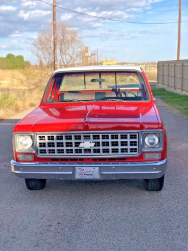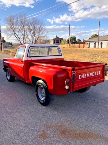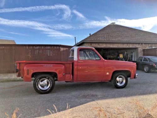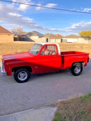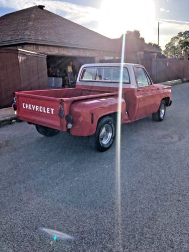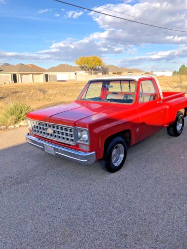 I am selling my 1975 Chevrolet C10 step side pickup. It has a 454 with 3 speed manual transmission. The truck is clean and strong, but obviously used. The color can be tricky. I like to think of it as orange to red-orange but I’m not sure of exact color. The paint has some minor pitting. Dashboard has some cracks. Fuel gauge not working. This is not a show truck but you can make it one. Underneath the truck is clean and I can provide pics if you text me or call me. I can also take some videos of truck and I can email them to you if you send me your email. The mufflers are midway as that is how the previous owner had them and liked them this way. If you have questions, call me at 432-630-9458.